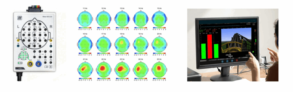 L’étape d’évaluation se fait grâce au système Mitsar conçu pour l’enregistrement et l’analyse de l’encéphalogramme à 19 canaux actifs. Il est combiné à la base normative Neuroguide qui permet de comparer les données de l’évaluation à la base de données normative la plus fiable et la plus précise, validée par la littérature scientifique.